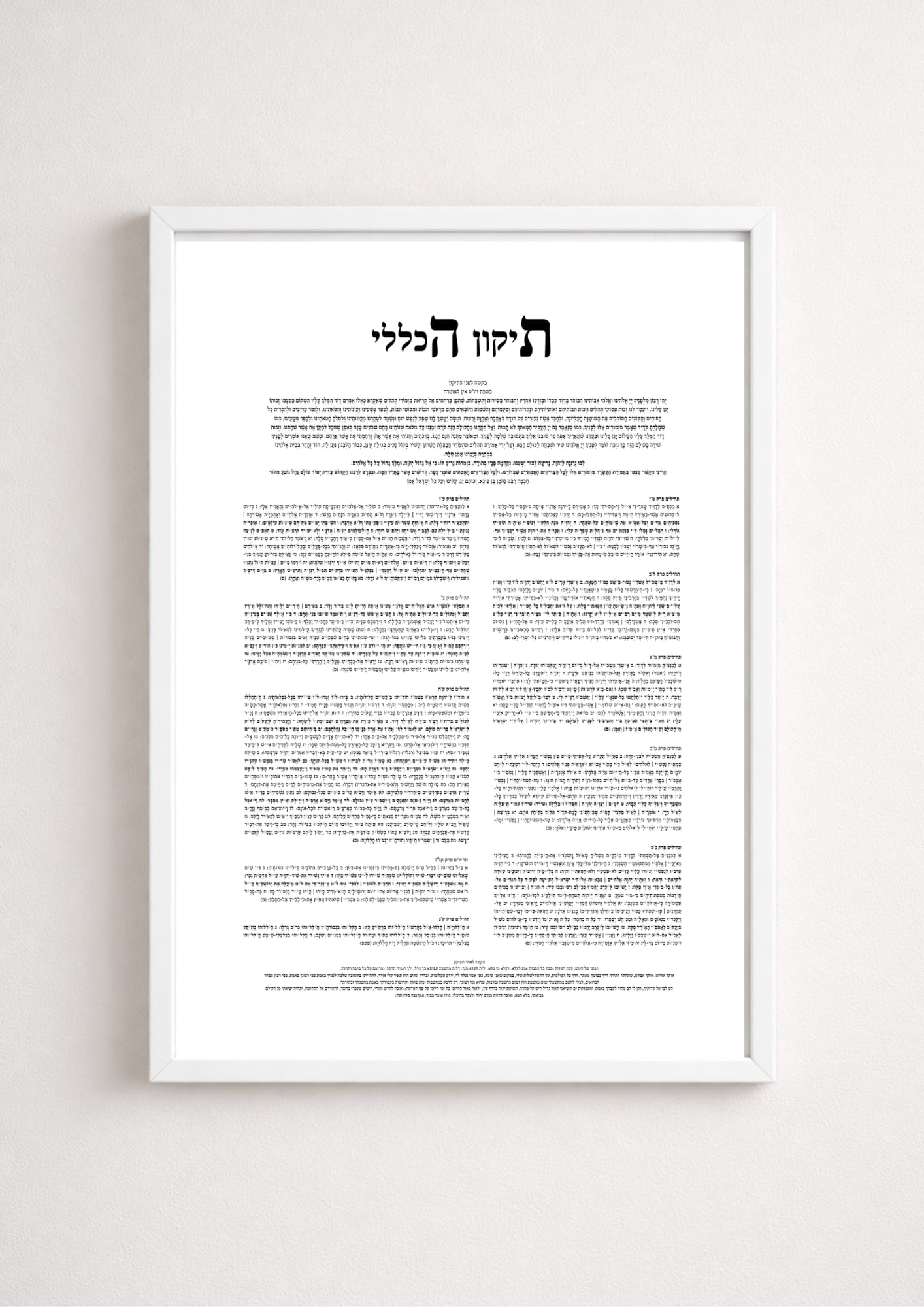 תמונת קיר מינימליסטית בגוון נקי ובהדפס 'תיקון הכללי' בגוון שחור על רקע בהיר, מעניקה לחלל מראה רגוע, אלגנטי ומלא משמעות. העיצוב הפשוט והמדויק מאפשר למילים להיות במרכז – ולהכניס הביתה השראה, אמונה וחיבור למסורת.