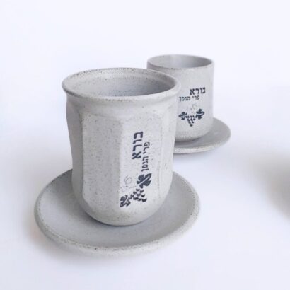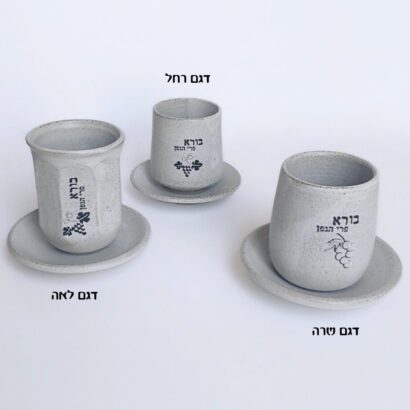 את כוסות היין בחרתי לעצב ולעבוד בשיתוף עם מעצבת ישראלית מוכשרת ולהכין אותם בעבודת יד מקרמיקה.