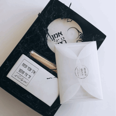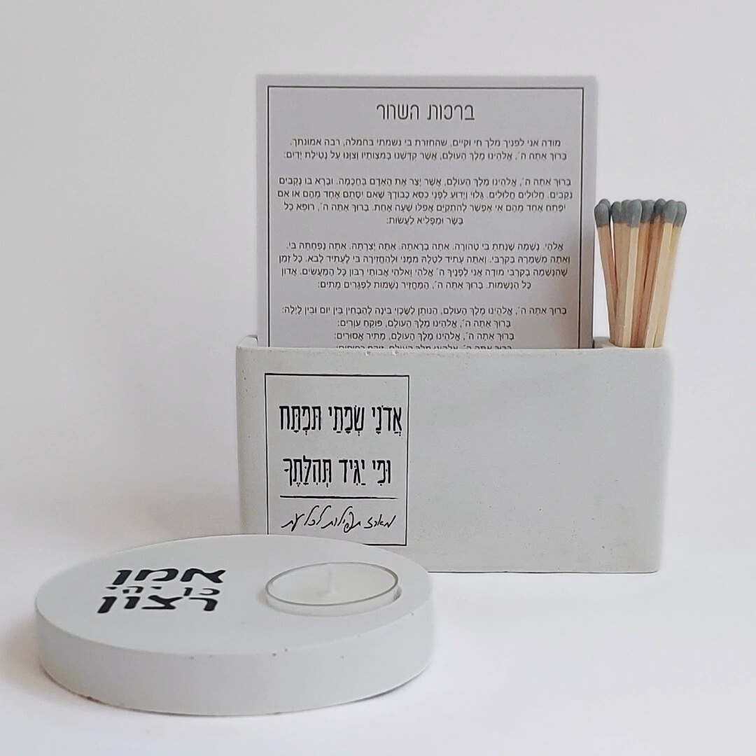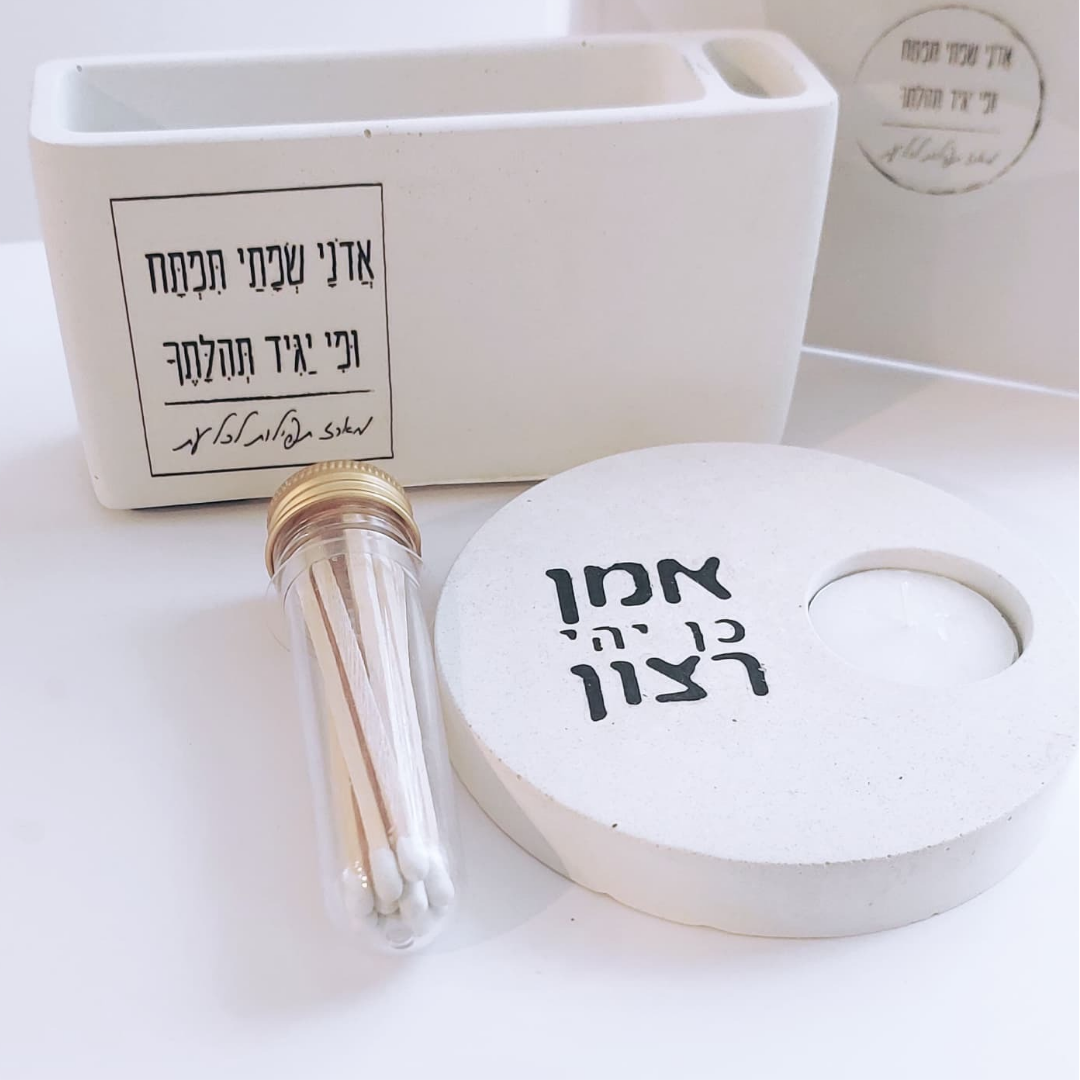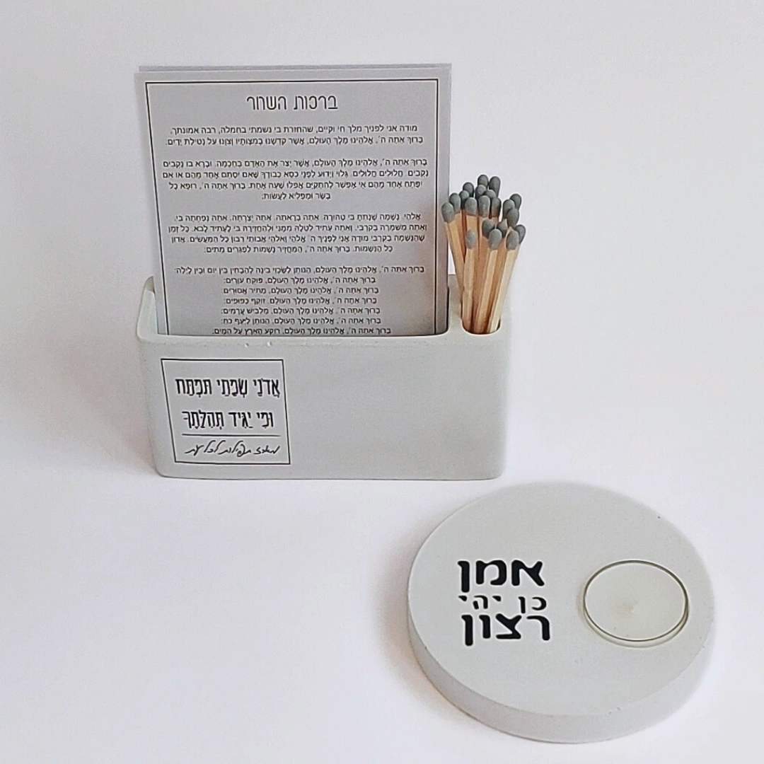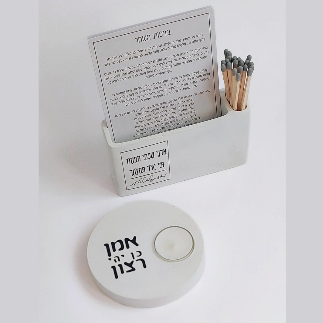 המעמד מגיע עם גפרורים ומדבקת הדלקה וכמובן – עם מעמד לנר "אמן כן יהי רצון".