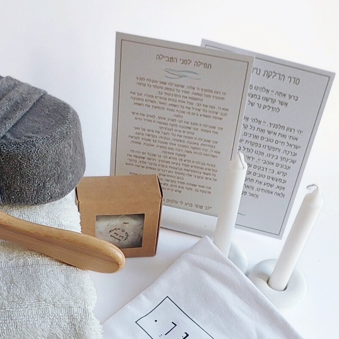 בתור אחת שחווה את סגולות וברכות המקווה, חיפשתי לייצר מארז מרגש, קליל, ידידותי לסביבה ושימושי לכלה, או לכל אישה שחפצה לטבול במקווה.
