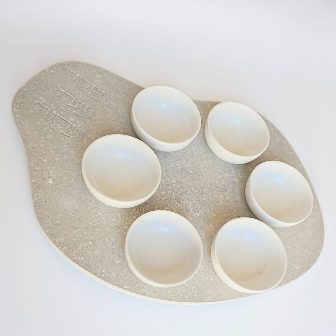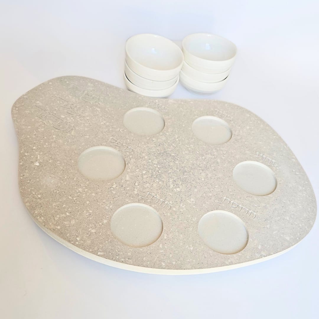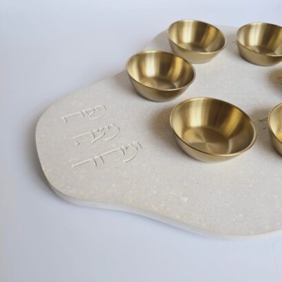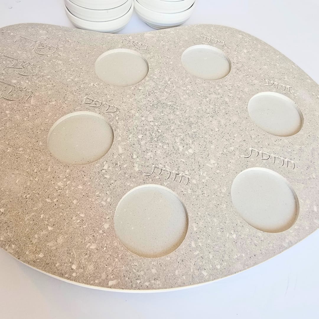 הצלחת עשויה מבטון בגימור ייחודי, עם חריטה עדינה לכל אחד מסימני הסדר,ומגיעה במגוון גוונים וטקסטורות לבחירה כדי שתוכלו להתאים אותה בדיוק לסגנון השולחן שלכם.
