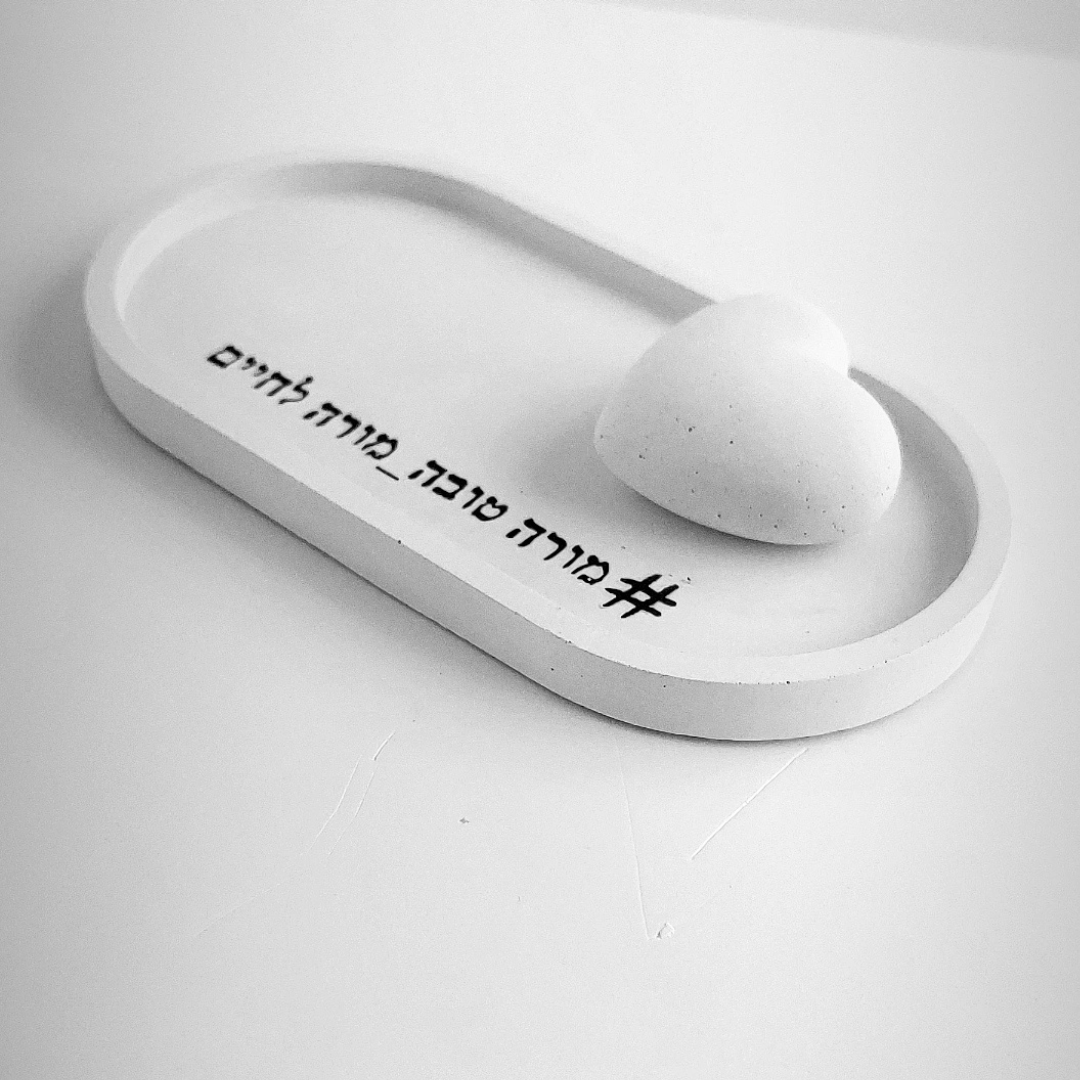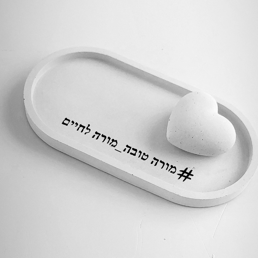 מגש בטון בעבודת יד, בעיצוב נקי ומרשים, עם לב בטון מעוצב – נגיעה של רגש ואסתטיקה