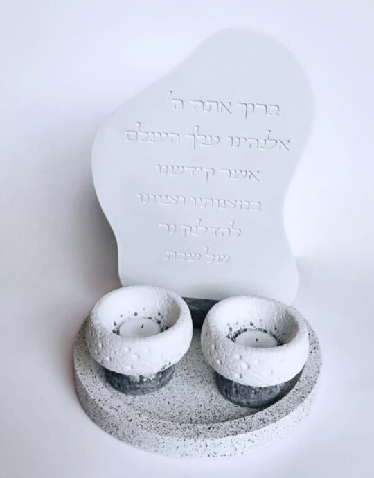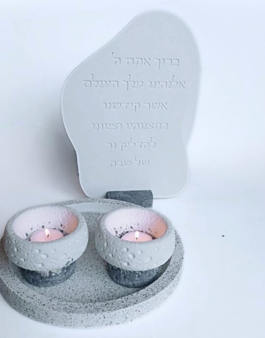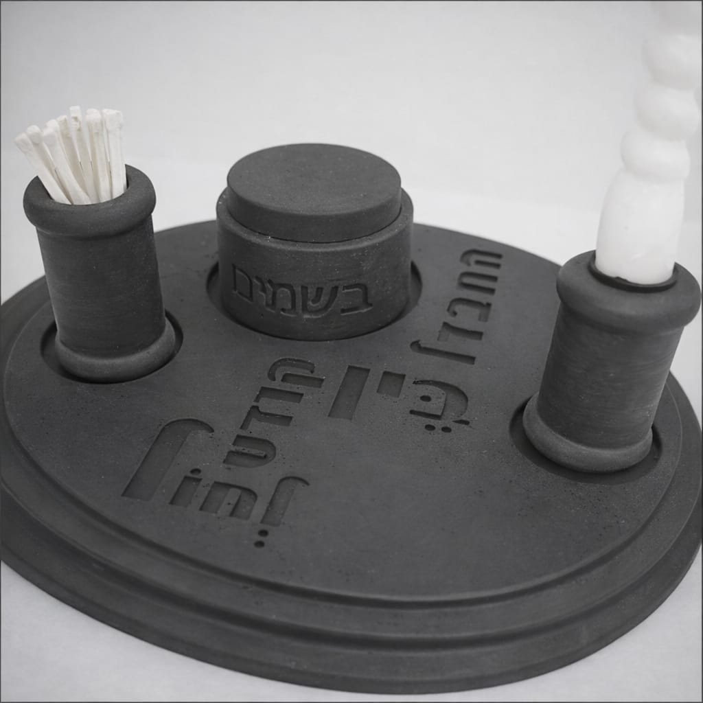 כל מגש מיוצר בעבודת יד מבטון, עם מקום לנר ההבדלה ( כולל הנר ), לבשמים ולמעמד גפרורים — כדי שכל הפרטים יהיו יחד, פשוטים ונכונים. אני אוהבת שהחומר הגולמי פוגש רגע רוחני, ושפריט יומיומי הופך לחלק מהבית ומהלב.