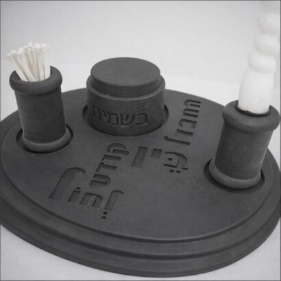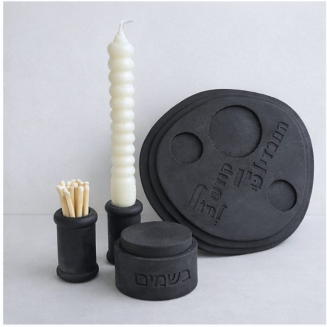 הבחירה בגוון השחור לא מקרית — יש בו עומק, יציבות ונוכחות רגועה. הוא מדגיש את הלהבה, ואת התנועה שבין קודש לחול, בין אור לחושך, כשמו כן הוא – מעגל הבדלה ( גם הכיתוב יוצר הבדלה בין הפריטים ) וכך נותן לטקס ההבדלה תחושה אלגנטית, מכוונת ומלאת משמעות.