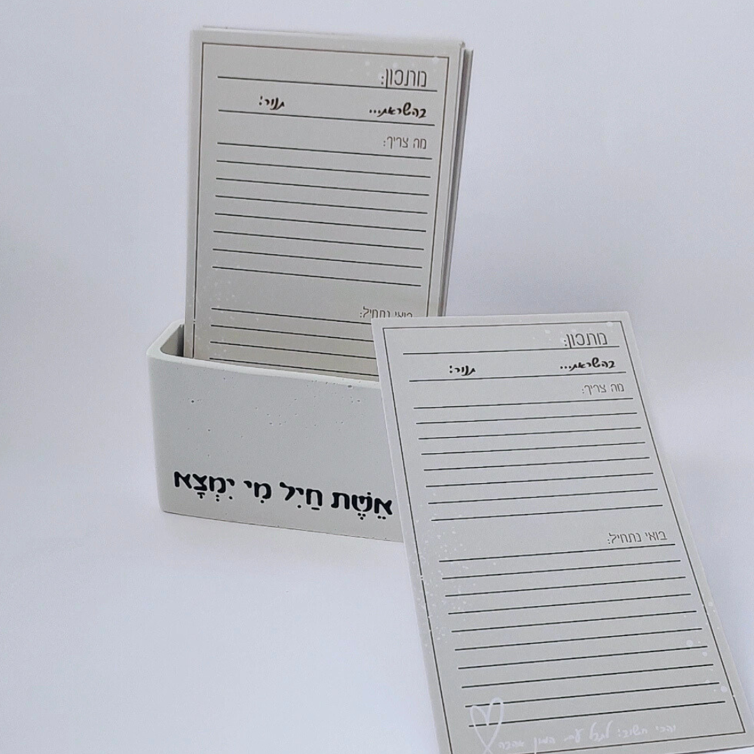 מעמד דקורטיבי מבטון עם כרטיסיות מעוצבות ונוחות, נשלפות אחת אחת, לכל המתכונים שלך!