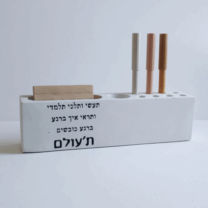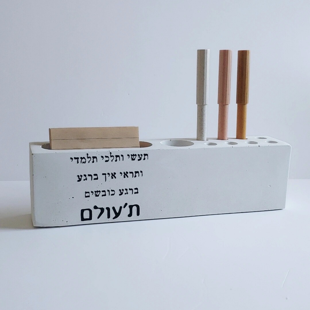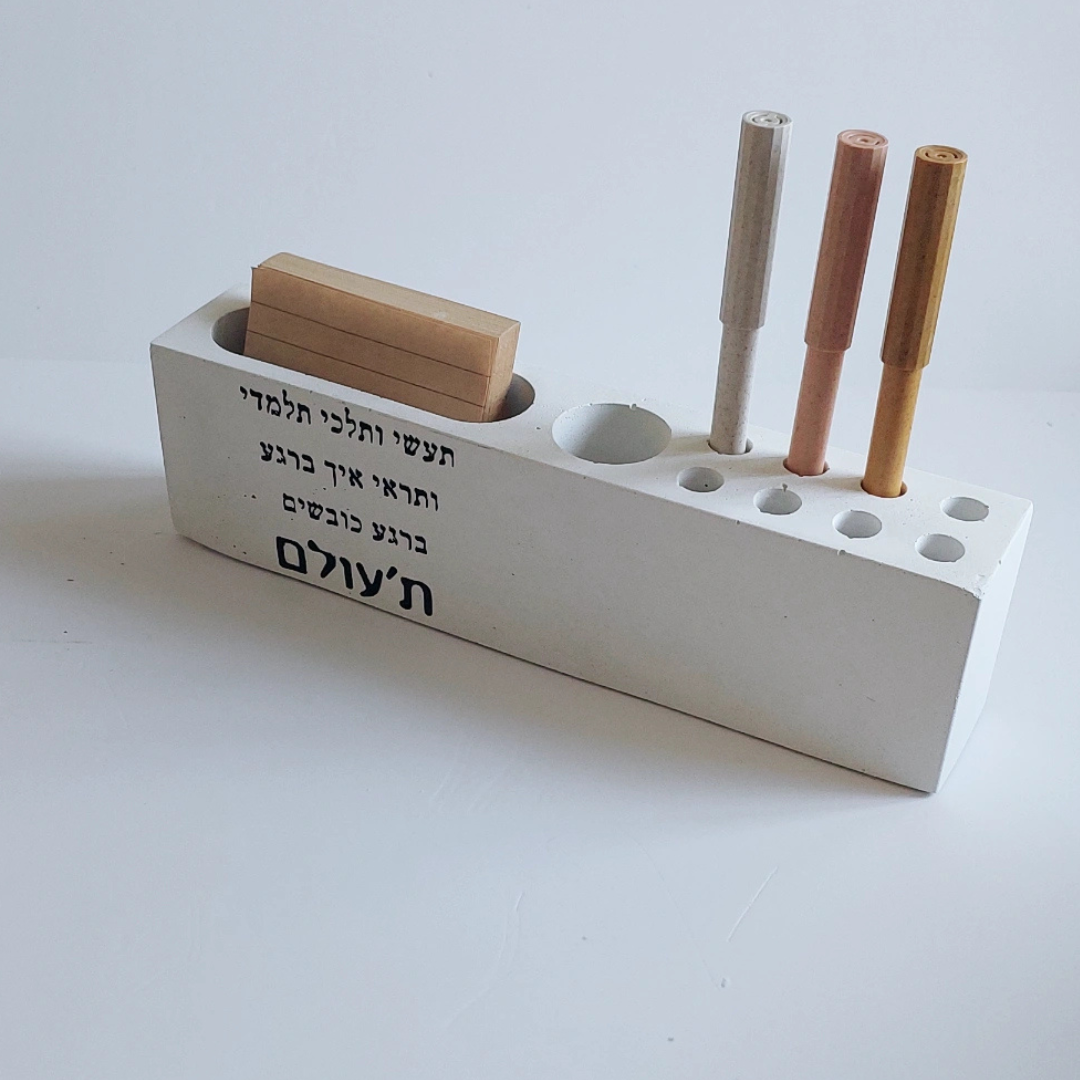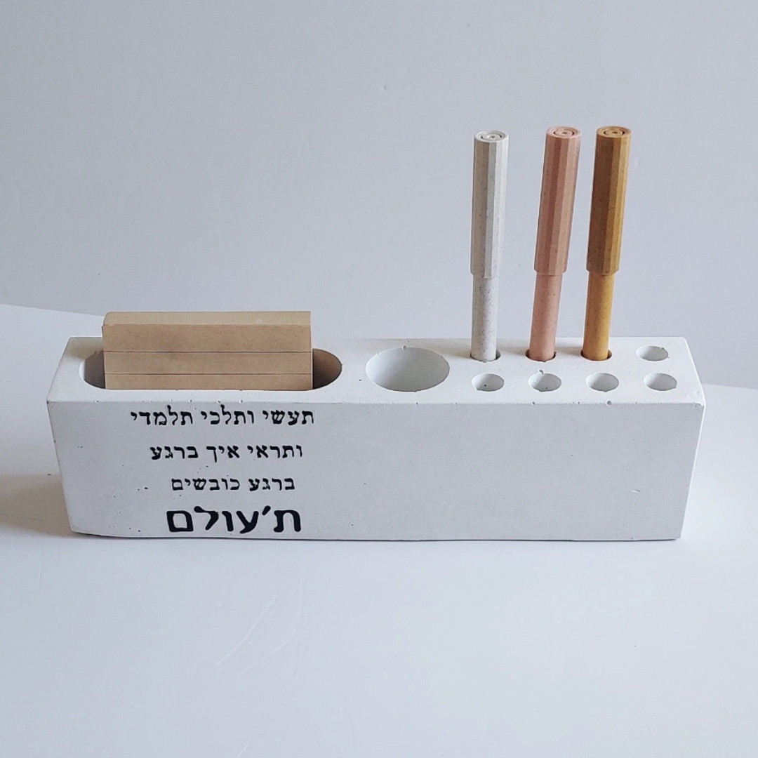 המעמד עשוי בטון, מגיע עם פתקיות ועט והוא פריט אידיאלי ושימושי לשולחן העבודה, עם משמעות וערך ריגשי.