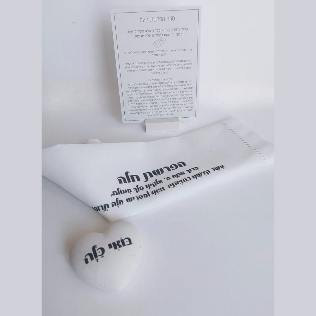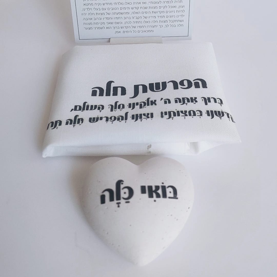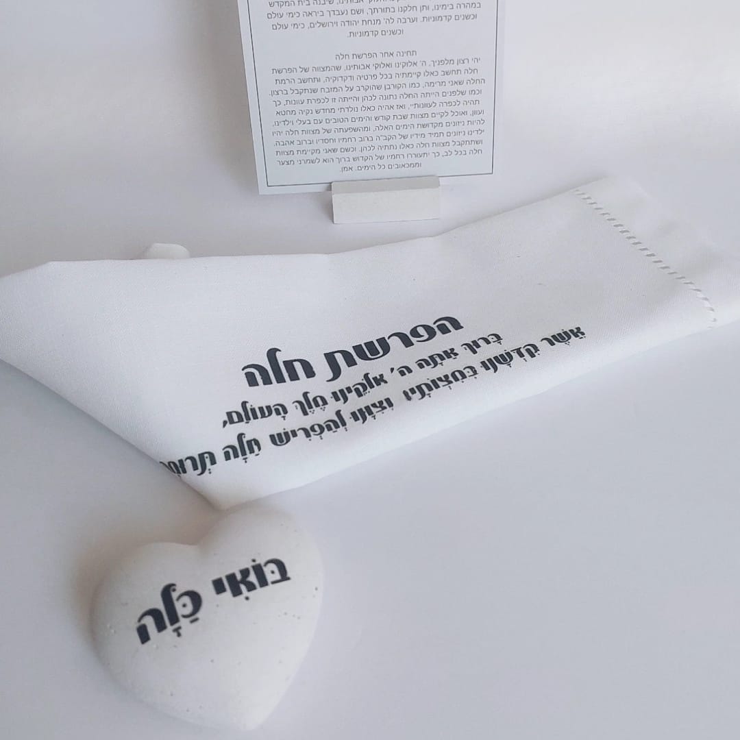כיסוי להפרשת חלה, ברכת הפרשת חלה ( מגיעה עם מעמד בטון ).. ואם את מביאה מתנה לכלה- אז חייב תוספת לב "בואי כלה"..
