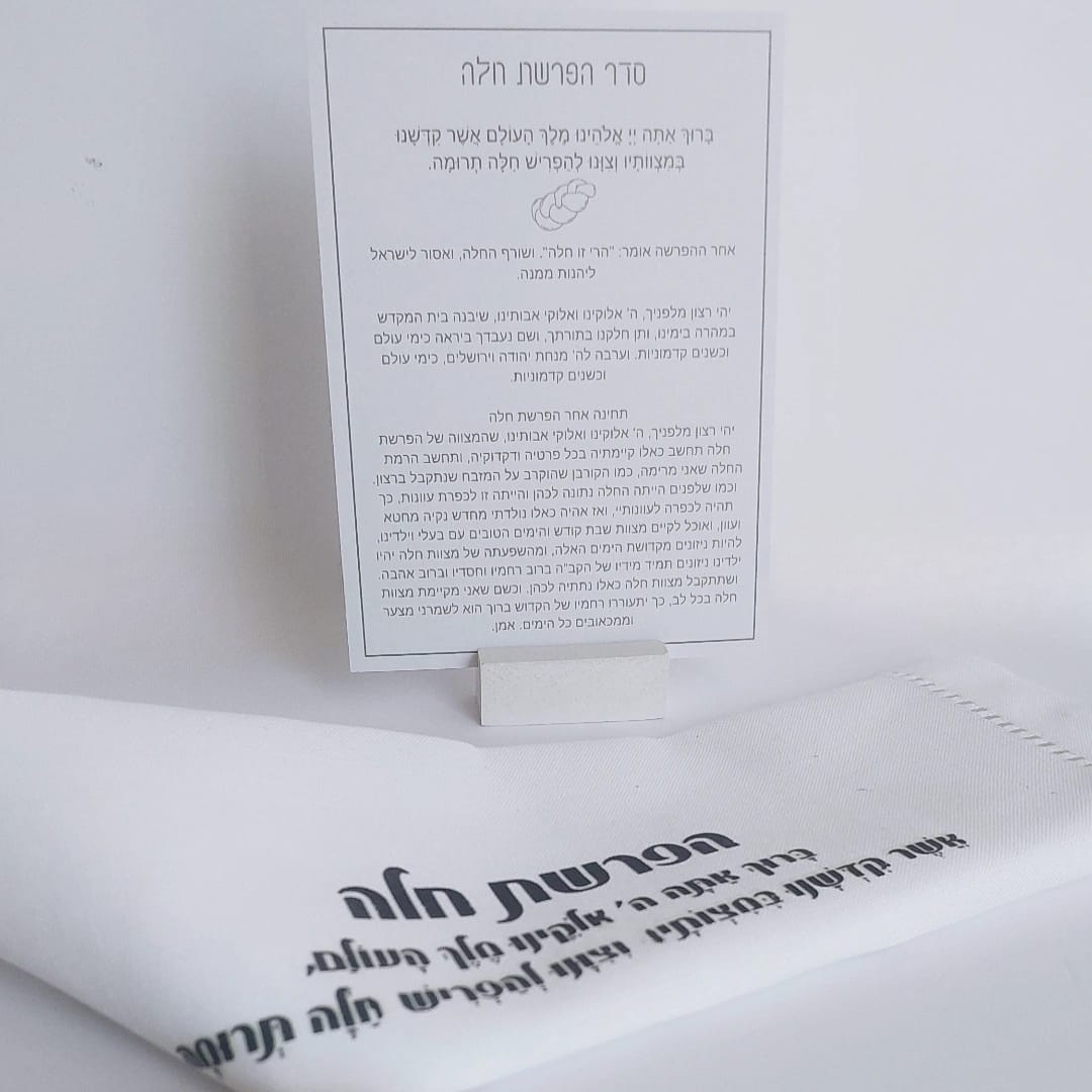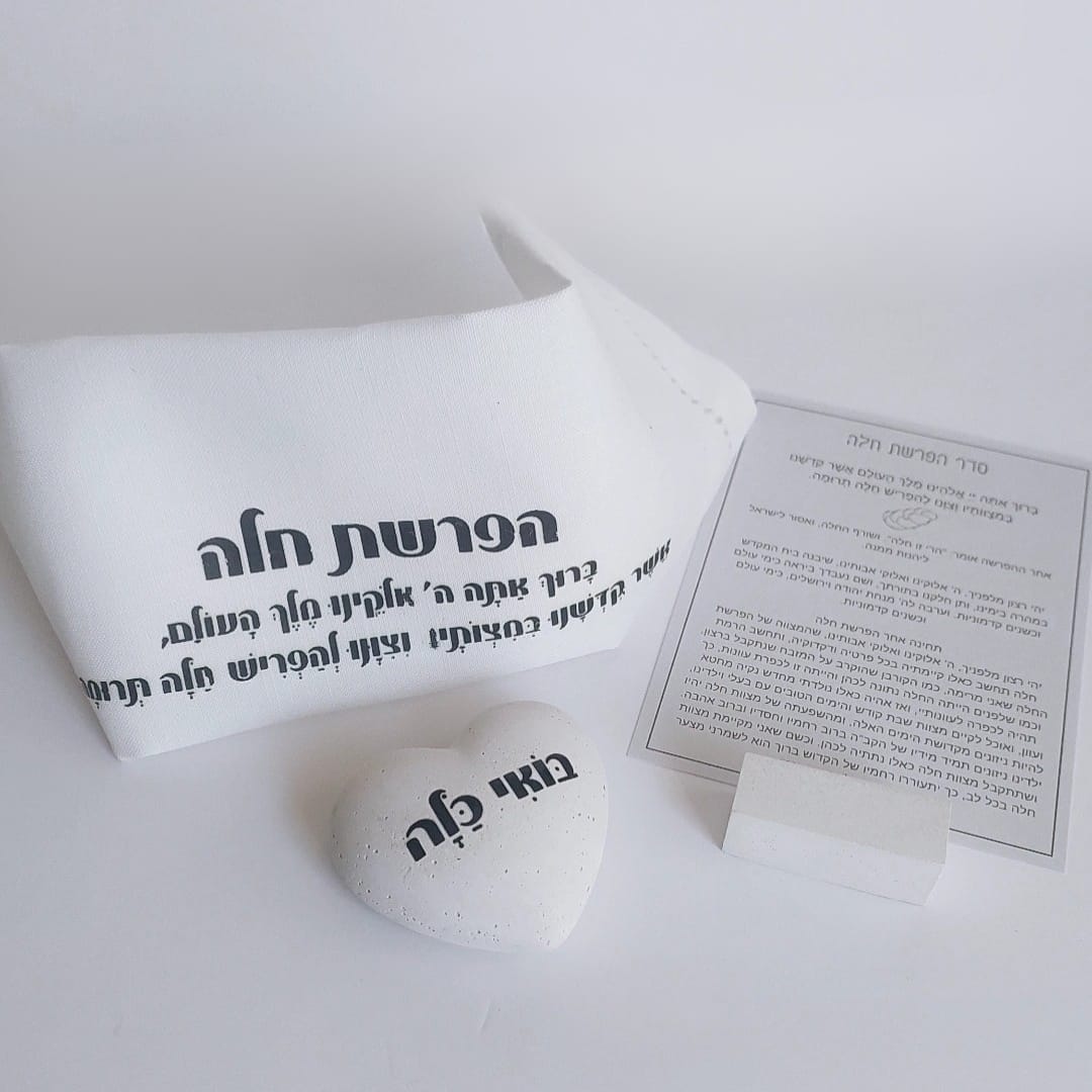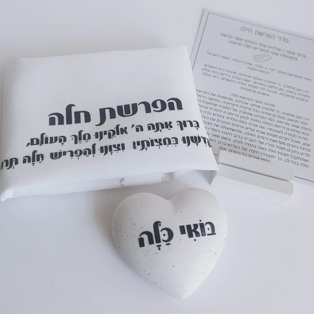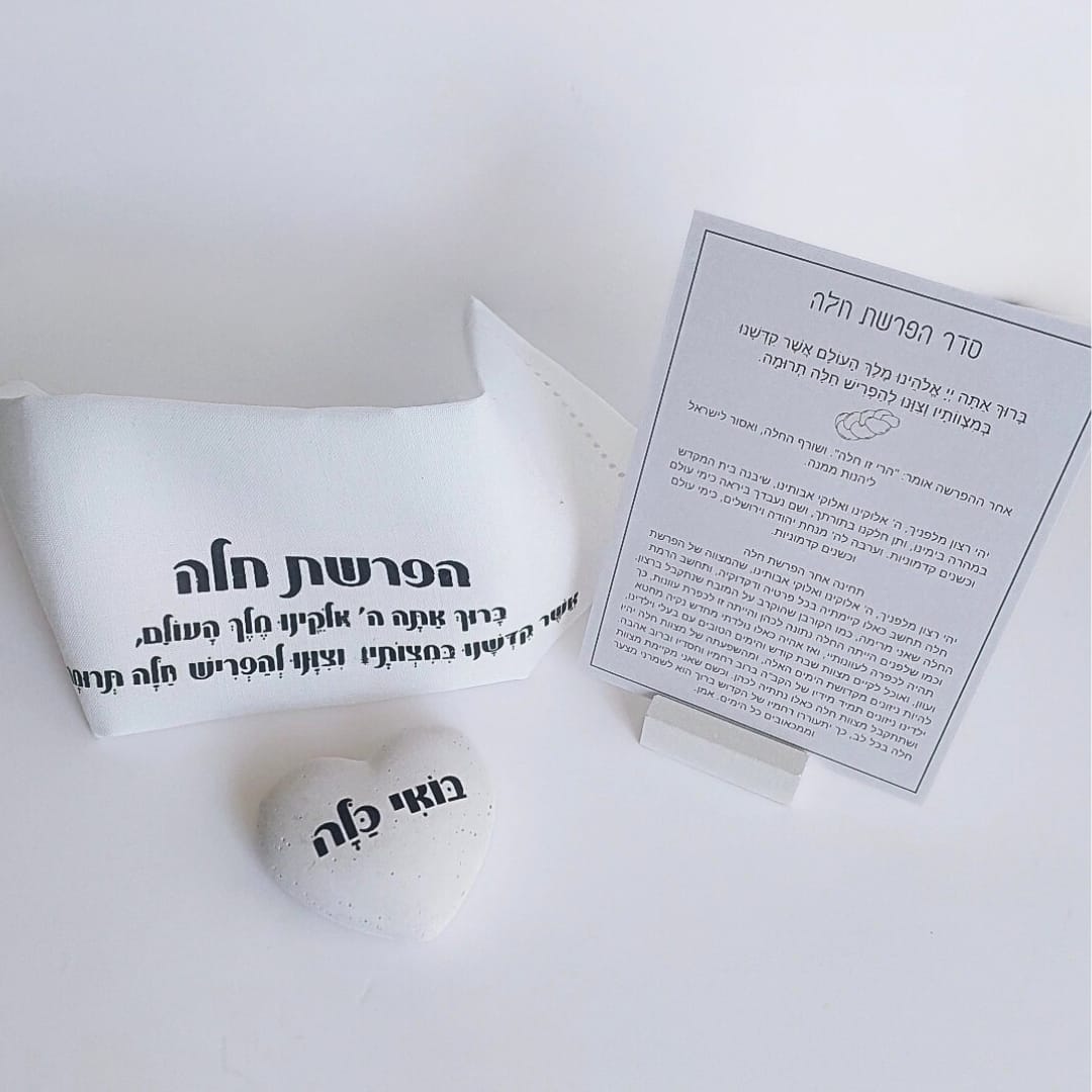 כיסוי להפרשת חלה, ברכת הפרשת חלה ( מגיעה עם מעמד בטון ).. ואם את מביאה מתנה לכלה- אז חייב תוספת לב "בואי כלה"..