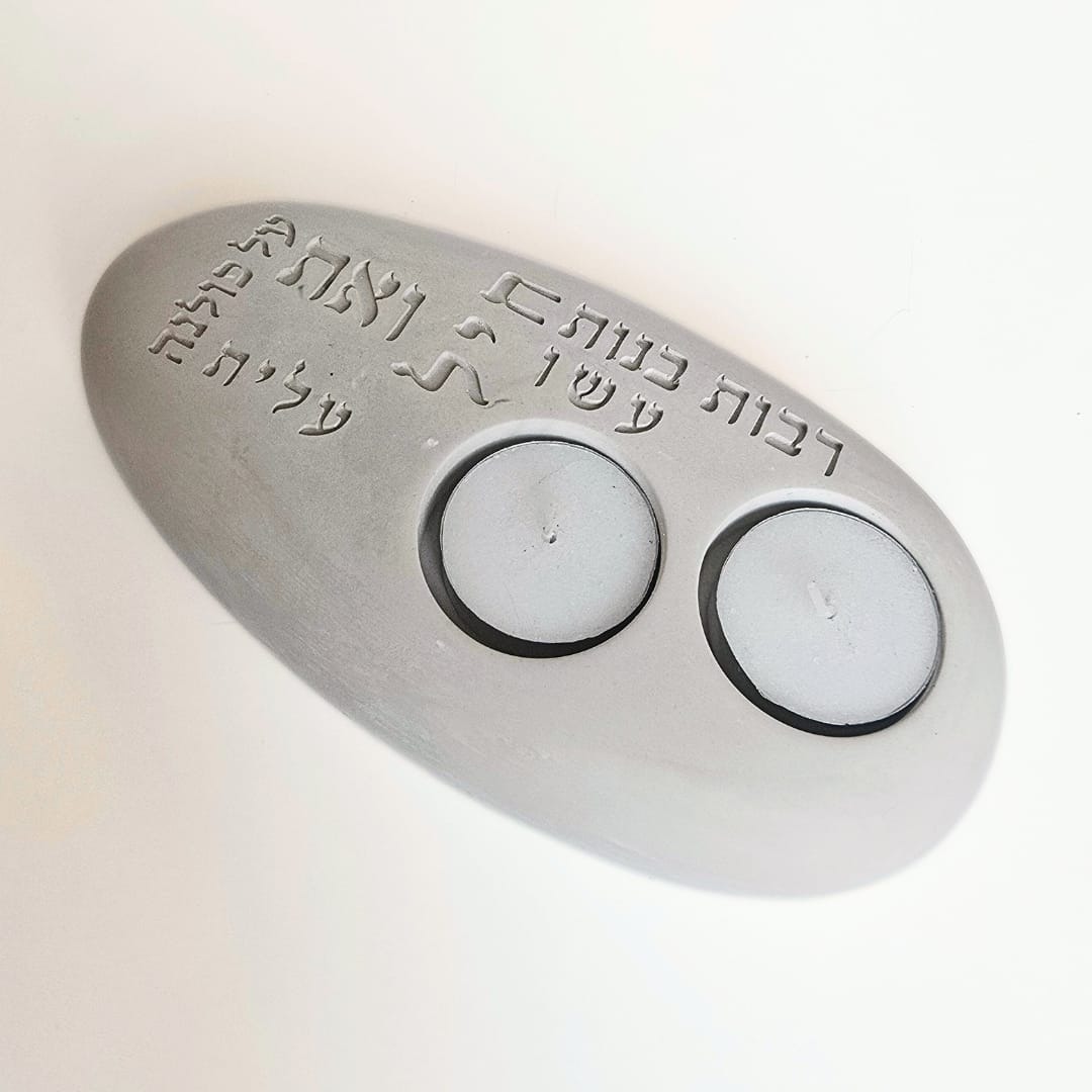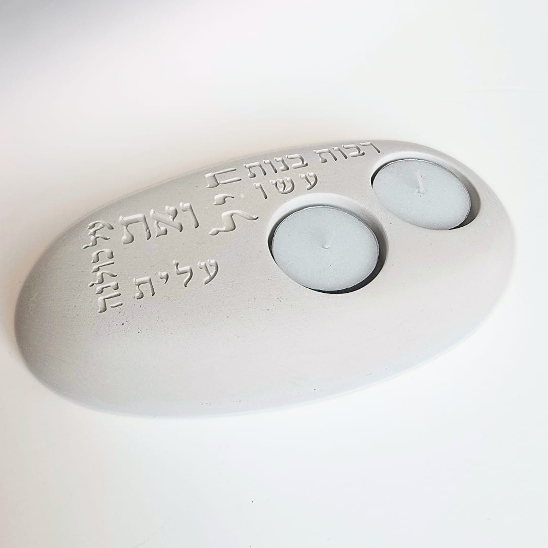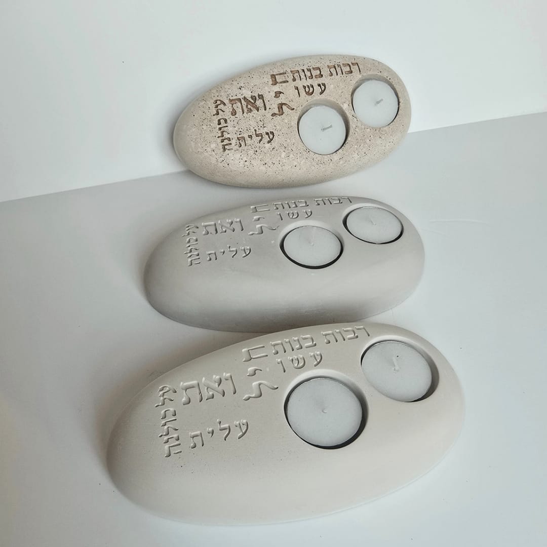״ואת עלית על כולנה״ מעמד לנרות שבת שיצקתי מבטון, בהשראת אשת חיל — העוצמה השקטה, האור היציב, זה שלא צריך להוכיח, רק להיות.