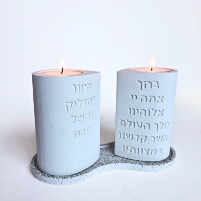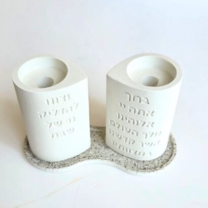 פמוטי שבת ייחודיים בעבודת יד מבטון, בעיצוב בהשראת הכרובים מן התורה – “ופניהם איש אל אחיו”