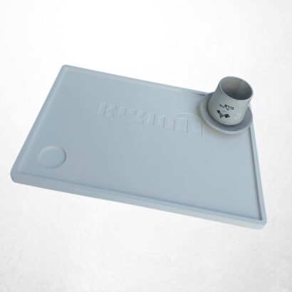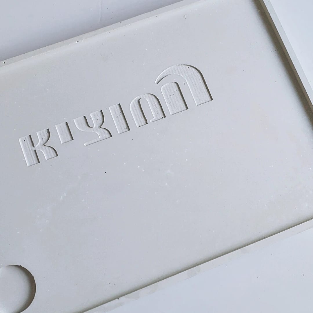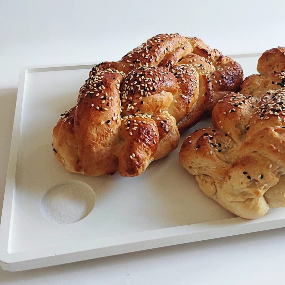 מגש בטון ייחודי בעבודת יד, בעיצוב נקי ומינימליסטי – מושלם להגשת חלה עם מקום ייעודי למלח.