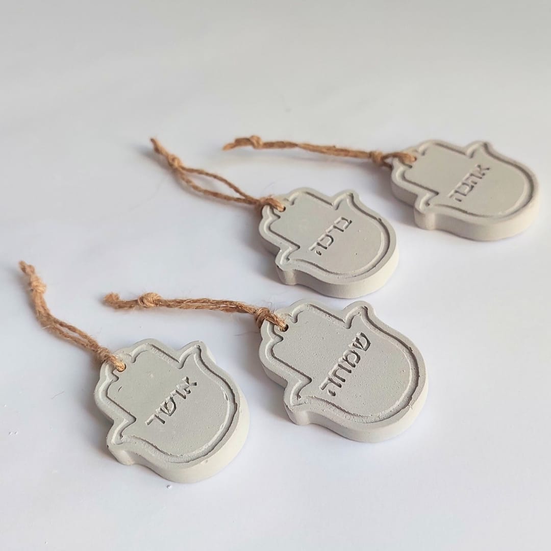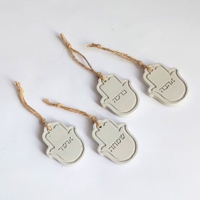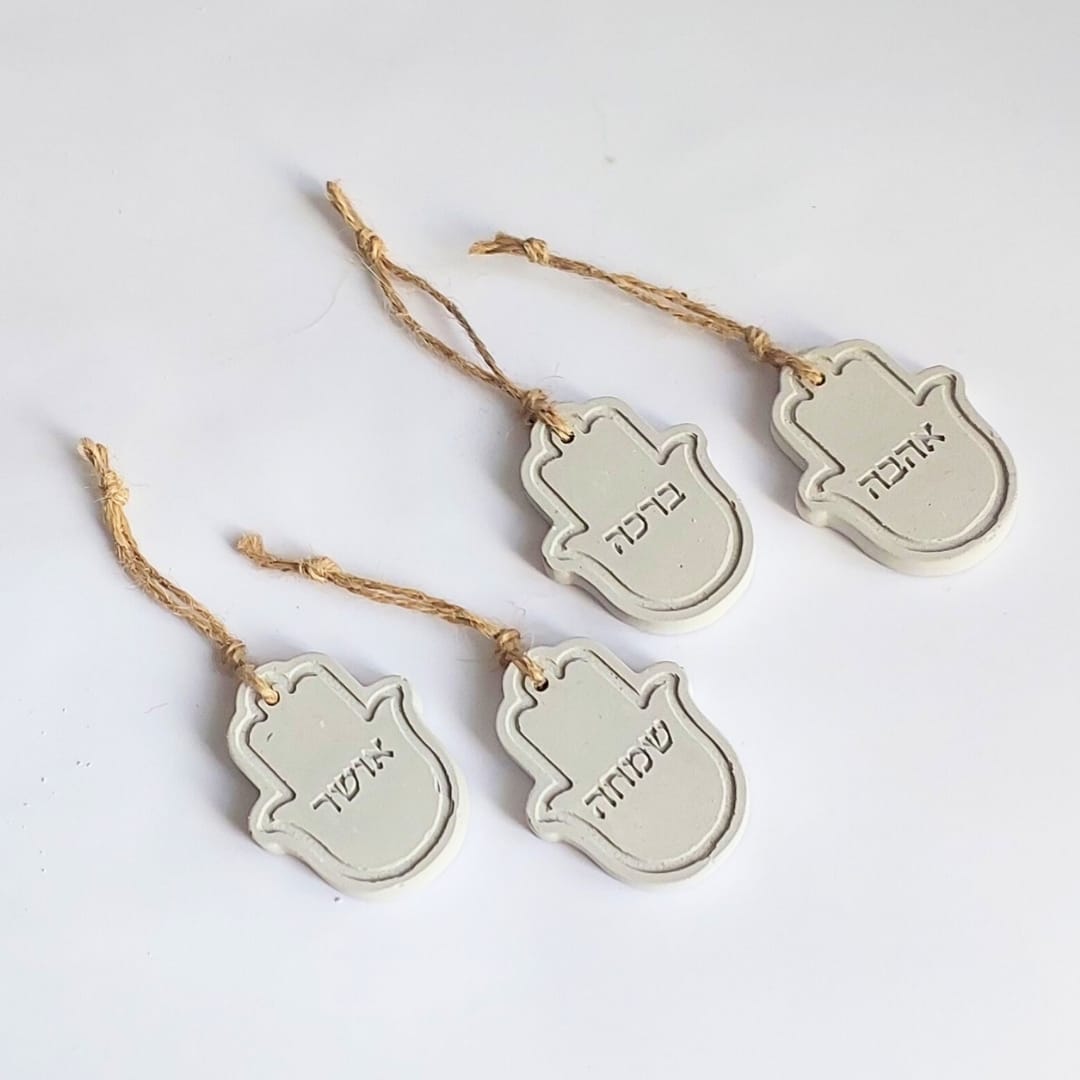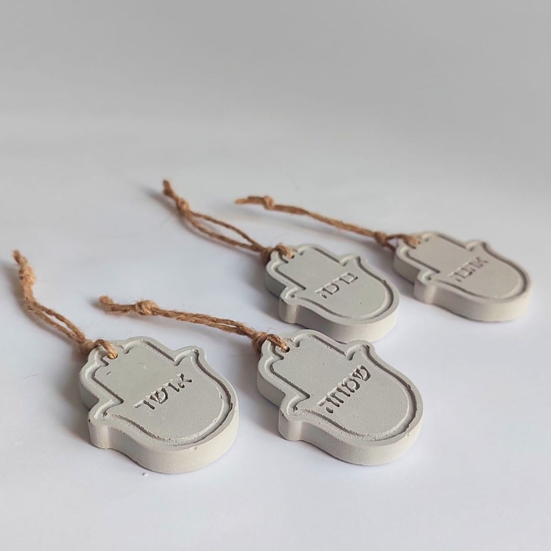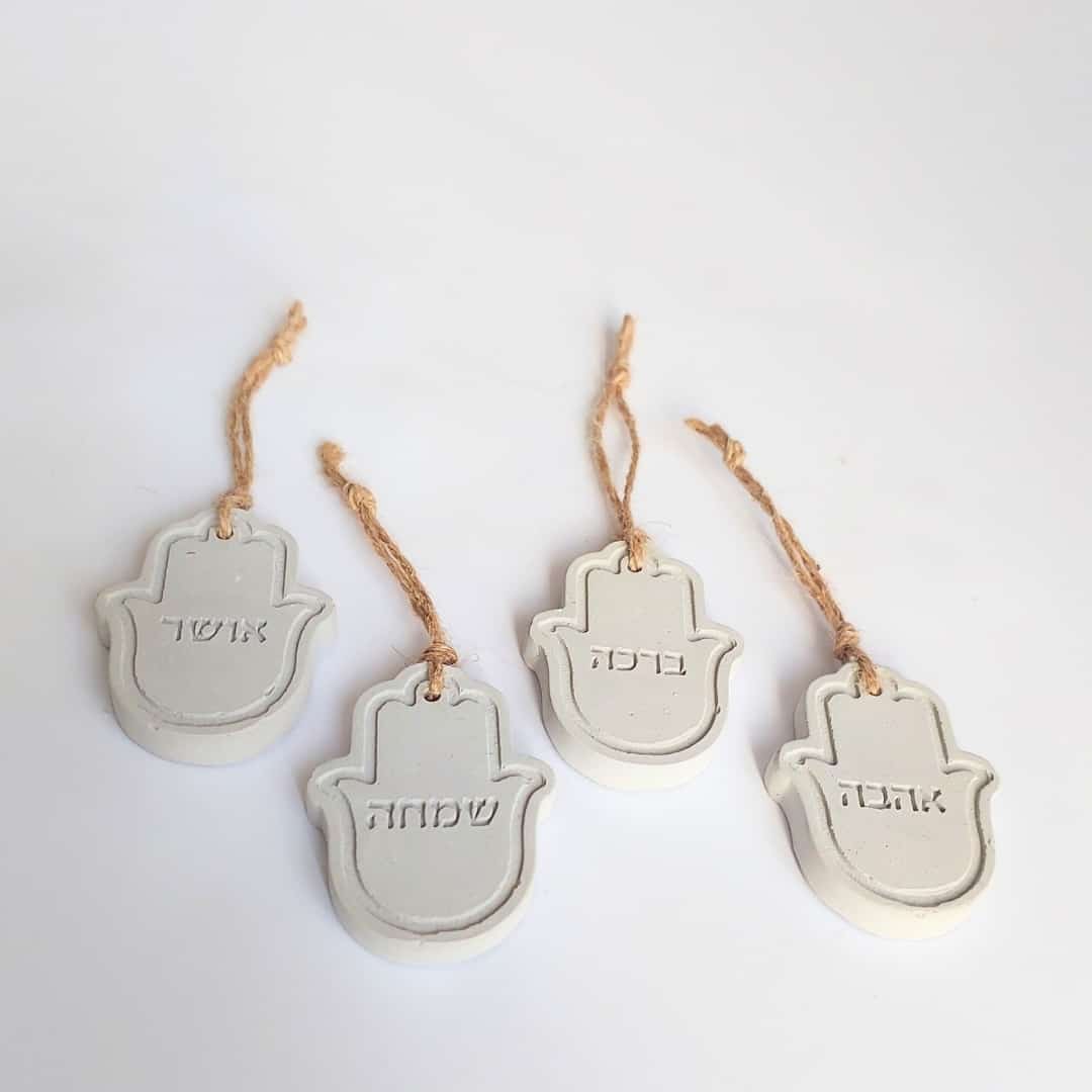 נראה לי שהדרך הכי טובה לפנק את האהובים שלכן היא פשוט לאחל להם רק טוב: אהבה, ברכה, שמחה ואושר.כל חמסה נעשית בעבודת יד מבטון נקי ומינימליסטי, ועליה מוטבעות בעדינות המילים שהן ארבע משאלות קטנות שמלוות את היום-יום ותלויות במקום שרואים ומרגישים.